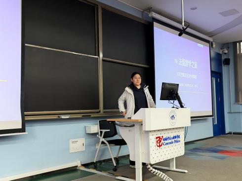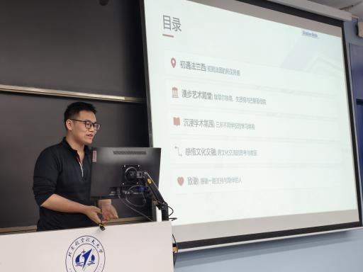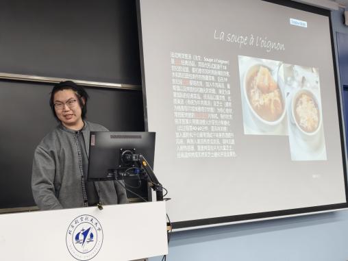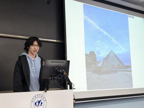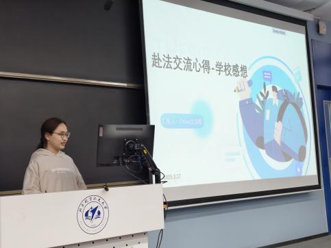 随后,班会进入气氛活跃的分享环节。在刚刚过去的寒假中,赴法国参加冬令营项目的刘家硕、丁之衡、沈羽晴、周可甜、才瑾瑜五位同学依次上台,通过精美的图片和生动的讲述,与大家分享了他们在法国的所见所闻、所学所感。从探索卢浮宫的艺术瑰宝到品尝地道的法式美食,从在课堂上的跨文化学习到与法国同学和国际友人的深入交流,同学们的分享内容丰富、视角多元,不仅展现了异国文化的独特魅力,也传递了此次研学之旅对个人成长和跨文化沟通能力提升的深刻影响,赢得了在场师生的阵阵掌声。