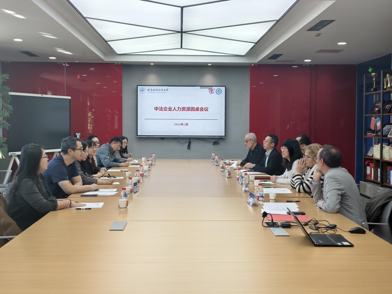 2026 年 3 月 18 日,新葡的京集团35222vip / 国际通用工程学院在学院路 2 号教学楼举办中法企业人力资源圆桌会议。学院中方院长耿立升、党委书记张江、法方院长 Adnane BOUKAMEL、中方副院长黄行蓉,赛峰集团、空中客车、华为、医智影、中航材导航等多家知名企业人力资源代表及学院法方项目管理团队教授齐聚一堂,围绕校企深度合作等核心议题展开深入交流,共商育人与发展大计。学院中方副院长黄行蓉主持会议开幕式。