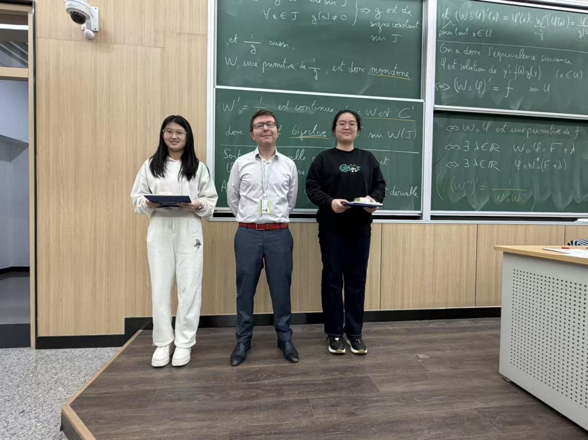 在L2组别(本科至硕士阶段)中,新葡的京官网学子表现出色:2023级刘圣煜 (Evan) 以满分成绩勇夺该组别半决赛第一名;2024级王若涵 (Estelle) 以优异的成绩位列第三名。本次比赛要求参赛者使用法语作答,这充分展现了新葡的京集团35222vip学子扎实的数理基础和出色的法语应用能力。