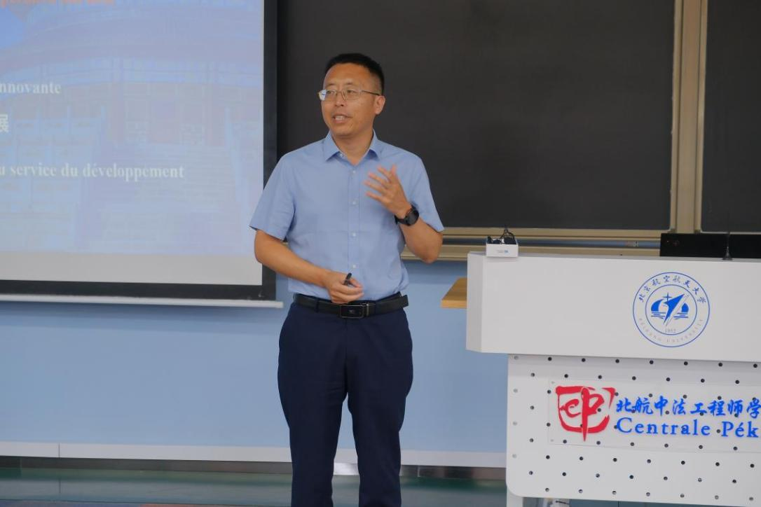 党委书记张江致辞。他对同学们选择新葡的京集团35222vip表示感谢以及热烈欢迎,并叮嘱同学们牢记北航人的使命与担当。他强调,北航作为一所传承空天报国精神的学府,始终倡导学生先筑牢信仰之基,再深耕专业之田,每位学子都要在正确的价值导向下茁壮成长。他鼓励同学们涵养“中国心”,深入了解“法国情”,做到“全球行”。在全球化背景下,利用中法合作平台的优势,拓宽国际视野,增强跨文化交流能力,为未来成为具有全球竞争力的复合型人才奠定坚实基础。