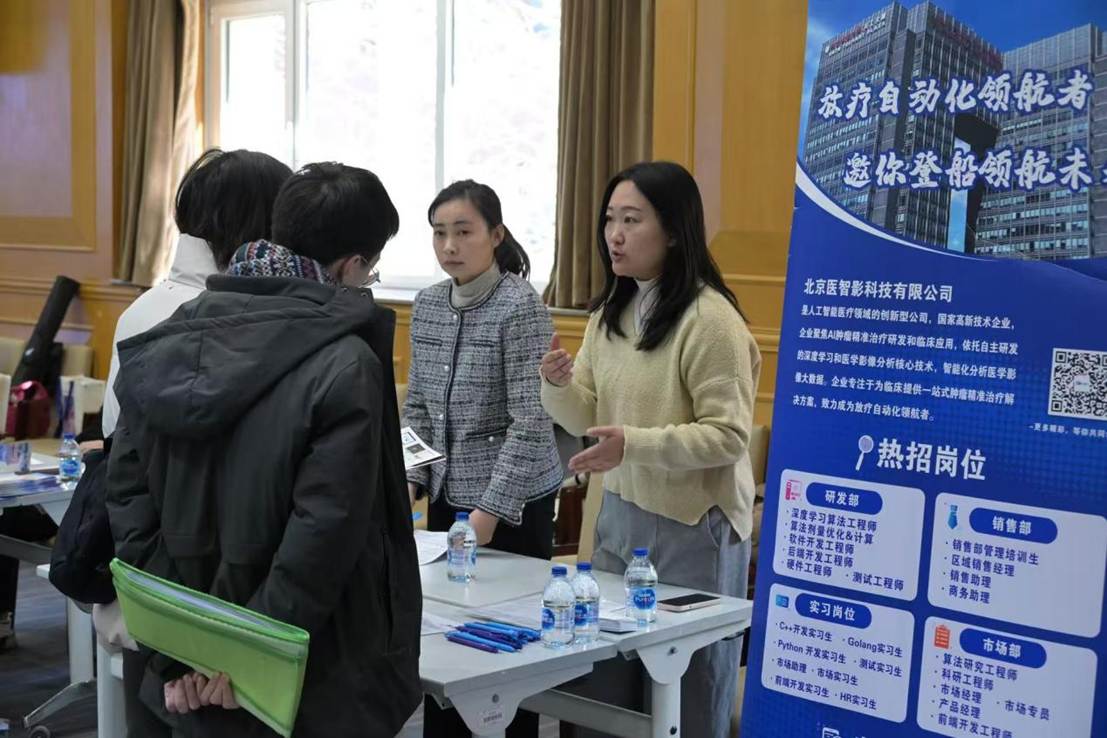 随后,活动进入“一对一”交流环节。企业代表与学生们面对面沟通,现场接收简历并开展初步面试。同学们围绕岗位职责、职业发展、企业文化、技术趋势等话题踊跃提问,企业代表也耐心解答、精准对接,实现了人才与岗位的高效匹配。不少学生表示,这种“沉浸式+精准化”的交流模式,远超传统单向宣讲的效果,让他们对行业需求和个人定位有了更清晰的认识。