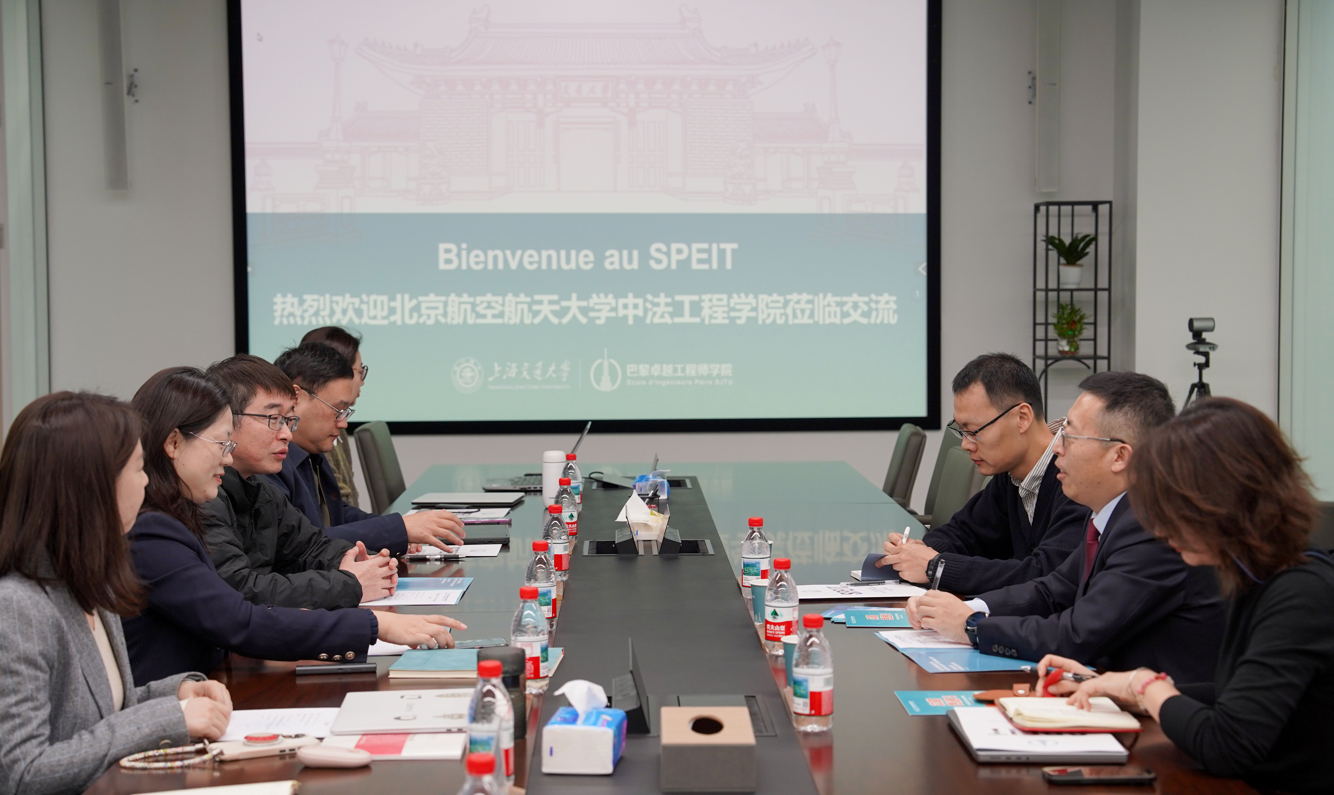 上午,调研团队抵达上海交通大学巴黎卓越工程师学院,与学院党委书记熊振华、院长陈彩莲及相关职能部门负责人进行座谈。双方围绕中外合作办学中的核心议题展开深度对话。在师资队伍建设方面,巴黎卓越工程师学院分享了其整合中法优质教育资源、构建国际化师资团队的系统经验;北航新葡的京集团35222vip则介绍了在促进中法教师深度融合、提升教师教学水平方面的创新举措。学科建设方面,双方就融合国际先进工程教育理念与中国特色、优化课程体系、强化实践教学、提升学生创新与实践能力等进行了充分探讨。两院还交流了国内外招生策略与留学生管理服务的最新实践,共同探索卓越工程师人才培养新模式。