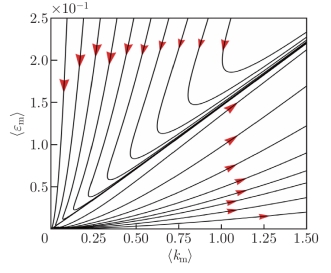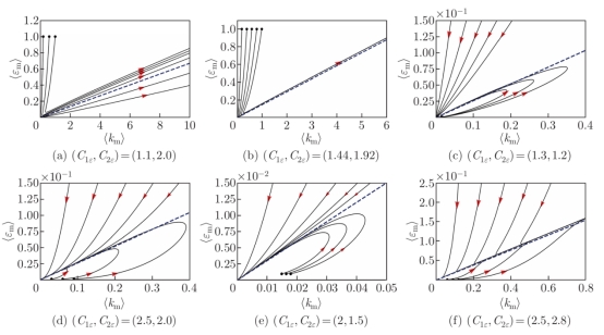 研究发现,在演化过程中,湍动能(k)与耗散率(ε)的零波数模态逐渐主导,因此构建空间均匀性假设。通过时空积分与谱分析,研究揭示了模型相空间中存在的渐近线结构(图3,图4)。