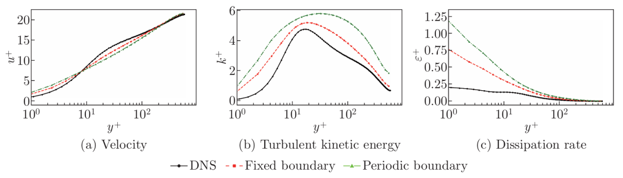 为验证上述理论结论,团队利用开源计算流体力学软件OpenFOAM进行了系统的数值计算。通过在周期和固定边界条件下选取代表性参数点进行计算,获得的相轨迹演化与理论预测高度一致。此外,在一个更贴近工程实际的槽道流案例中进行的耦合RANS计算也表明,即使在动量方程与湍流模型方程耦合迭代的情况下,周期边界条件依然会导致收敛困难,而固定边界条件则能引导模型收敛至更合理的流场结果(图8,图9)。